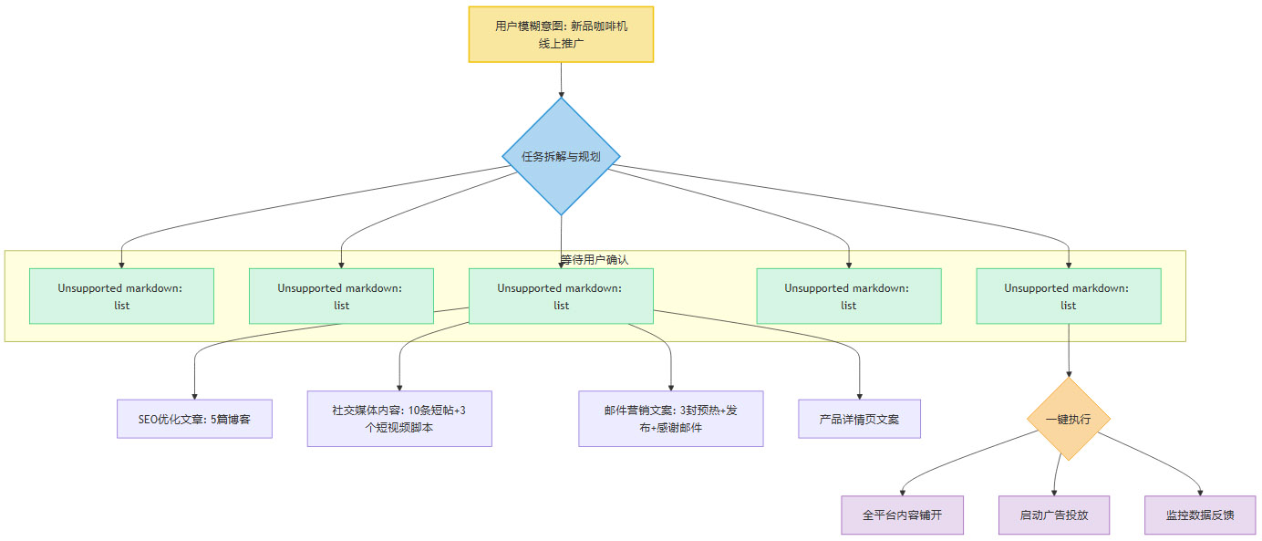 它直接跳过了那个需要用户绞尽脑汁构建复杂指令的环节。现在,你只需抛出一个模糊的、高层次的目标,它就会像一个经验丰富的团队主管,主动帮你完成后续所有繁琐的拆解和规划工作。