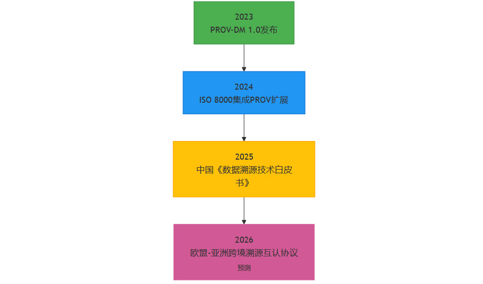 突破性进展:PROV-DM模型已实现与ISO 8000数据质量标准的互操作,支撑跨境医疗数据交换。
