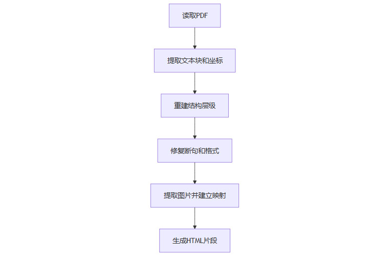Word/HTML/Markdown | 用结构化标签直接解析,python-docx等工具提取文本和图片 | 保留层级和语义,输出富文本HTML,便于后续处理 |