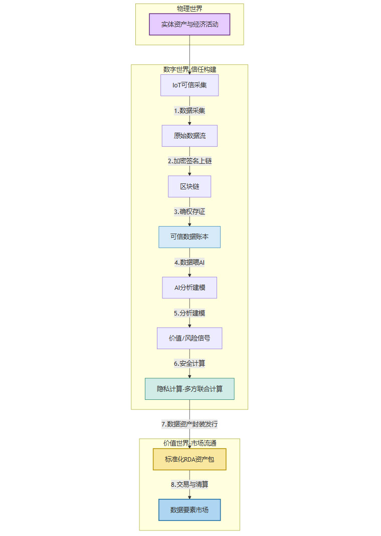上图清晰地展示了RDA从数据源头到最终市场流通的全过程,以及四大技术在其中扮演的关键角色。