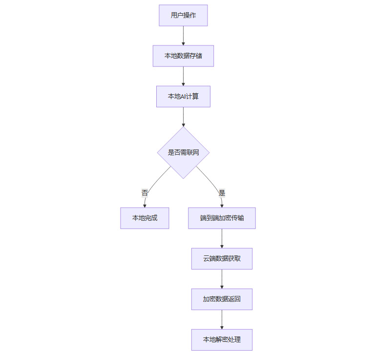 这一架构确保了用户数据在绝大多数场景下不离开本地,只有在必须联网时才进行加密传输,最大限度保障了数据安全。