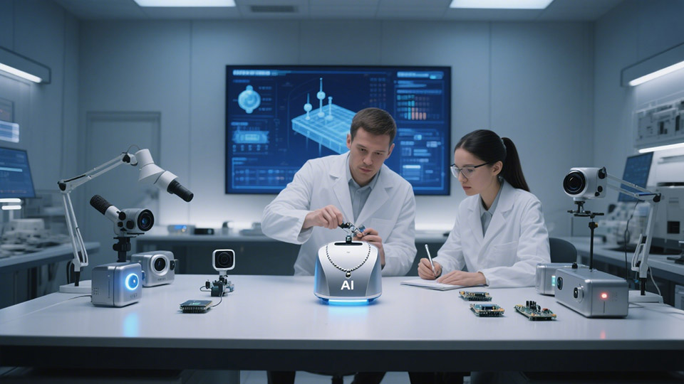 设计师通过设备实时生成3D模型草图,AI自动优化结构与美学