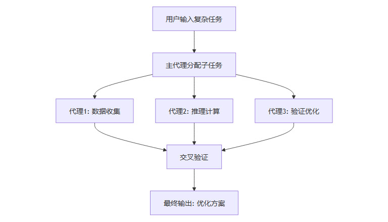 为了让大家更直观地理解这个多智能体协作,我来画个简单的流程图,用 Mermaid 格式展示一下: