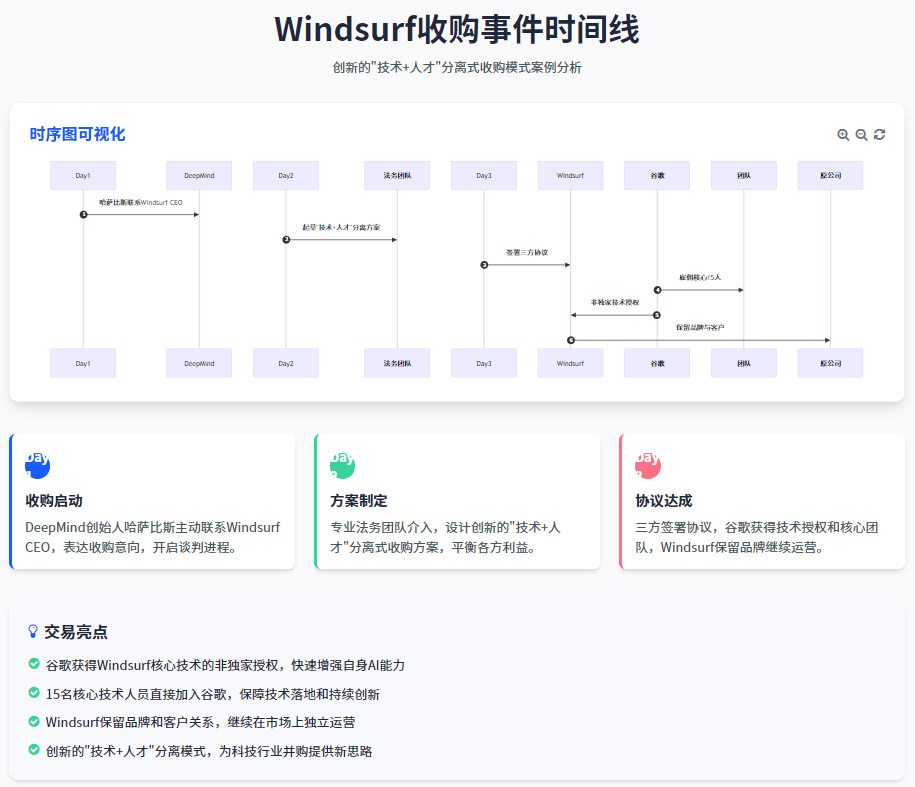 【摘要】OpenAI 30亿美元收购Windsurf突遭谷歌截胡,微软协议成关键阻碍,硅谷"人才优先"收购模式正颠覆传统游戏规则。