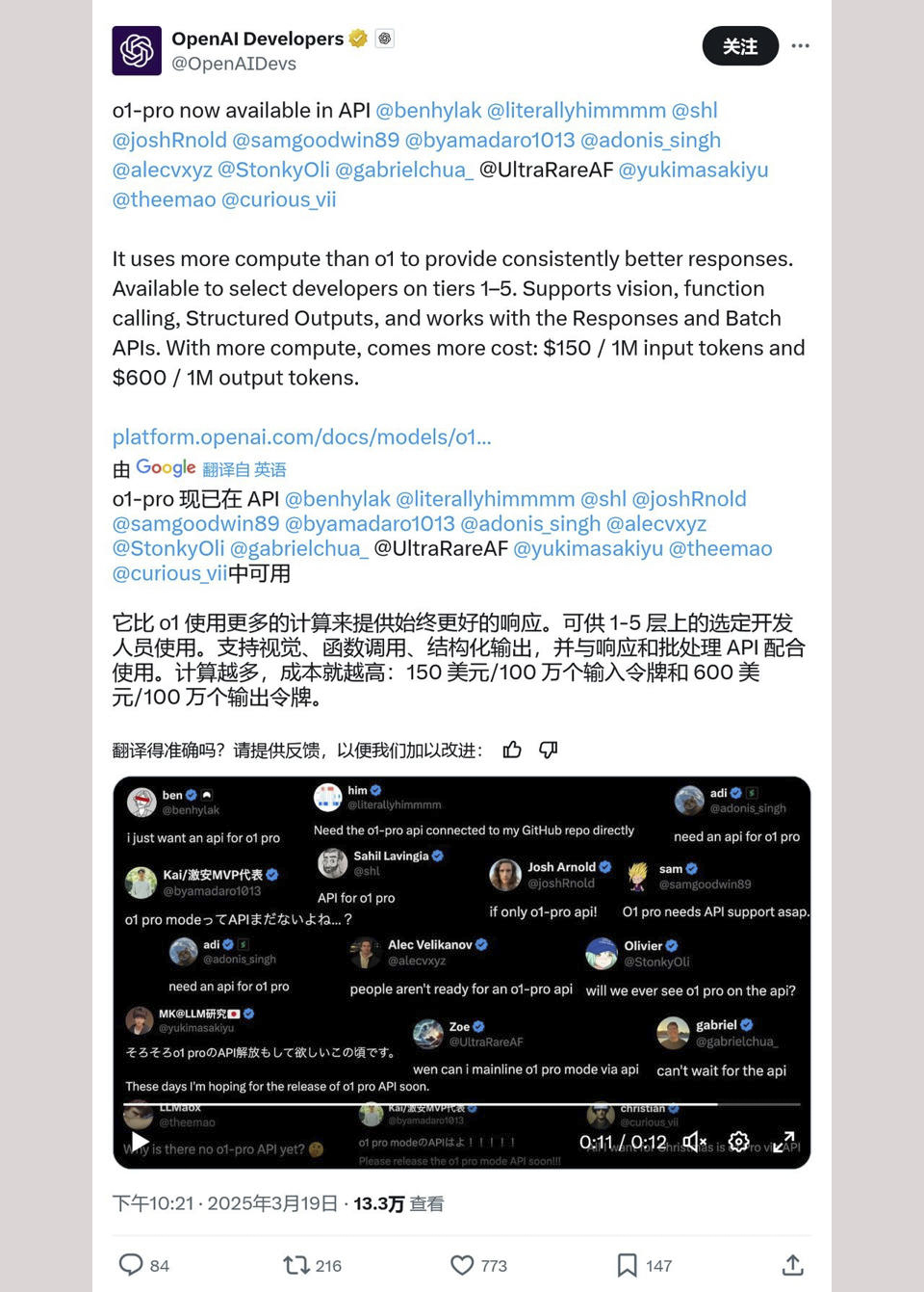 3 月 20 日,OpenAI 在 X 平台上宣布推出 o1 系列的升级版“o1-pro”,号称通过更多计算资源实现更优质、一致的回答。不过,这款新模型只对特定开发者开放(需要在 API 服务中至少消费 5 美元),而且价格比同类产品高出不少。