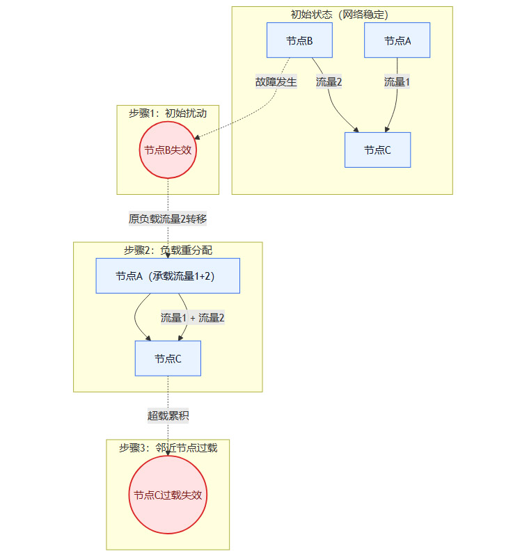 级联失效的发生机理,本质上是一个负载重分配与节点过载的连锁反应过程。我们可以将其分解为以下几个步骤: