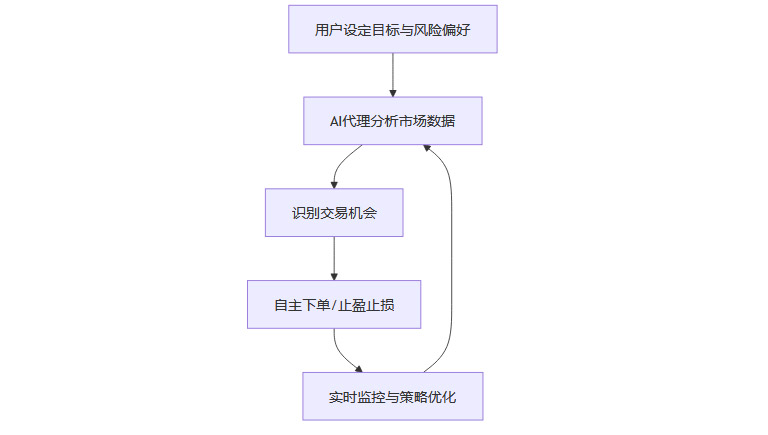 AI代理能够根据用户设定的目标和风险偏好,自动分析市场数据、识别交易机会,并自主下单、止盈止损,实现7×24小时无间断高效交易。其能力远超传统量化机器人,能够动态适应市场变化并持续优化策略。