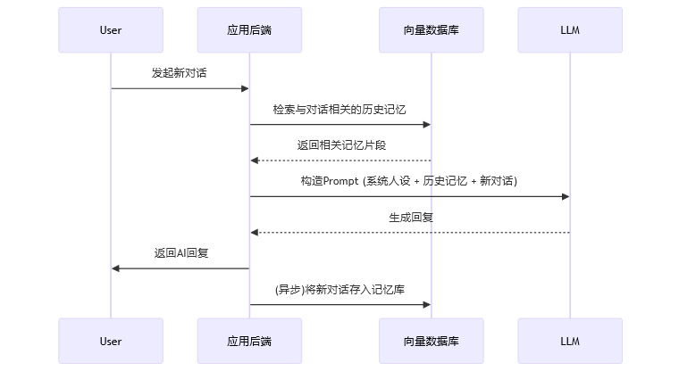RAG (Retrieval-Augmented Generation):这是实现长期记忆的主流方案。将用户与AI的对话历史、用户偏好等信息,通过Embedding模型转化为向量,存储在向量数据库(如Pinecone, Milvus)中。当用户发起新对话时,系统先从数据库中检索最相关的历史信息,再将其作为上下文(Context)注入到Prompt中,让LLM“记起”过去。