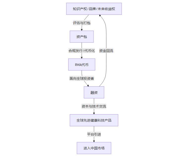 中国的OTC企业拥有大量优质的知识产权(IP),包括药品专利、品牌商标、独家配方,甚至未来的销售收益权。传统上,这些无形资产很难作为抵押物进行融资。而通过RWA,可以将这些IP打包、评估、代币化,然后面向全球合格投资者进行融资。这相当于为中国医药资产开辟了一条全新的“数字化出海”高速公路。License-in(数字化引进)
