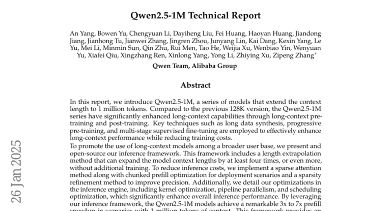 这项由阿里巴巴集团Qwen团队的安洋、俞博文、李成远等众多研究人员共同完成的重磅研究,于2025年1月28日正式发布。该研究详细介绍了Qwen2.5-1M系列模型的技术突破,其论文全文已在arXiv上公开(编号2501.15383),为有兴趣深入了解的读者提供了完整的技术细节。