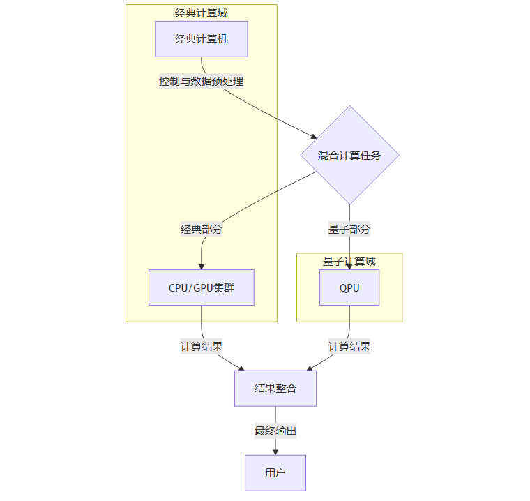 在这个模型中,QPU扮演的是一个专用协处理器或加速器的角色,负责处理它最擅长的量子子程序,而大部分的数据处理、逻辑控制和AI模型的经典计算部分,仍然由CPU和GPU完成。这是一种“协同”,而非“取代”。