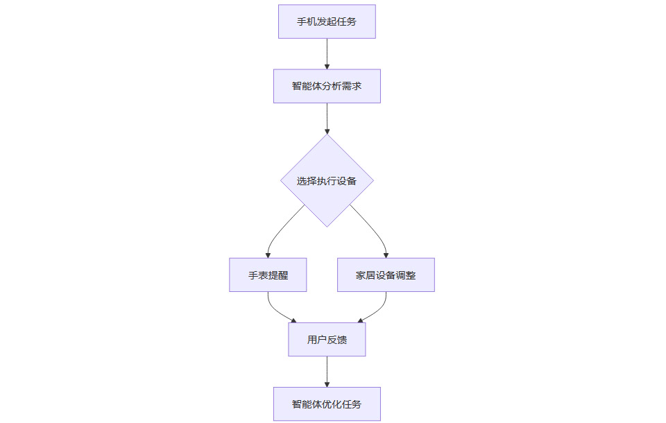AI智能体能够根据任务需求,在不同设备间自动流转。例如,用户在手机上发起会议预约,智能体可自动同步到手表提醒,并在家居设备上调整环境设置,形成完整的智能任务链。