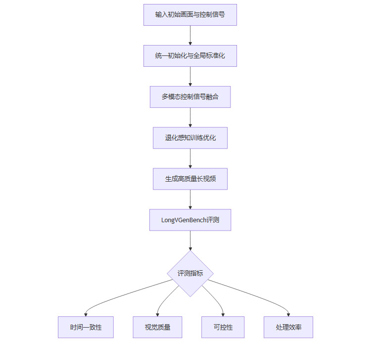 LongVie系统的出现,正是针对上述难题提出了系统性的解决方案。其核心创新体现在统一初始化策略、全局控制信号标准化、多模态控制框架、退化感知训练策略四大技术支柱上。下面将逐一剖析这些创新点。