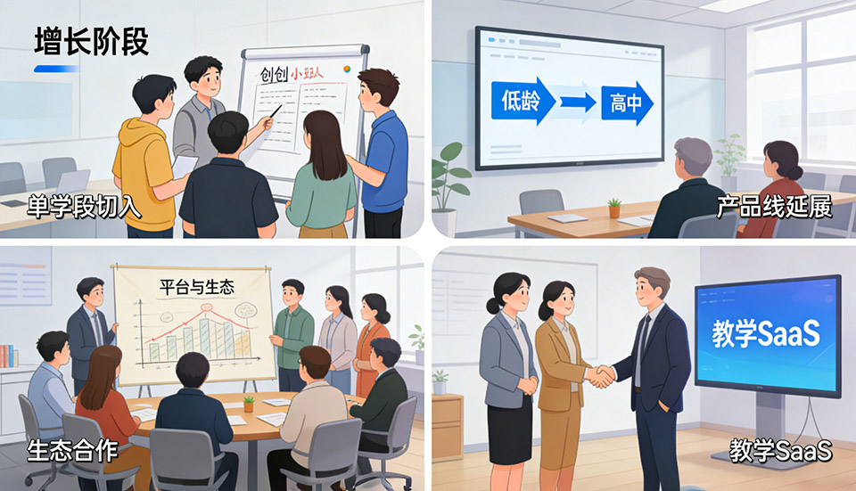第一阶段,以单学段单场景切入,例如“初中数学智能诊断 + 过程化讲解”。目标是在 B2C 市场跑通闭环,证明学生和家长愿意为过程和方法付费。