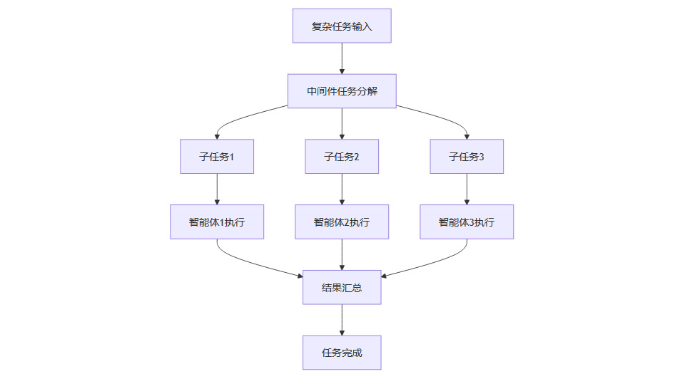 以下是一个简化的任务分配流程图,展示中间件在多智能体协作中的作用: