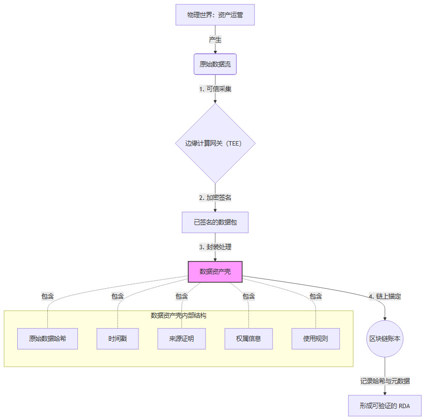 过程:通过前文所述的技术堆栈,将实体资产在运营过程中产生的、无形的、杂乱的原始信号,转化为一份份标准化的、权属清晰的、可信的RDA。